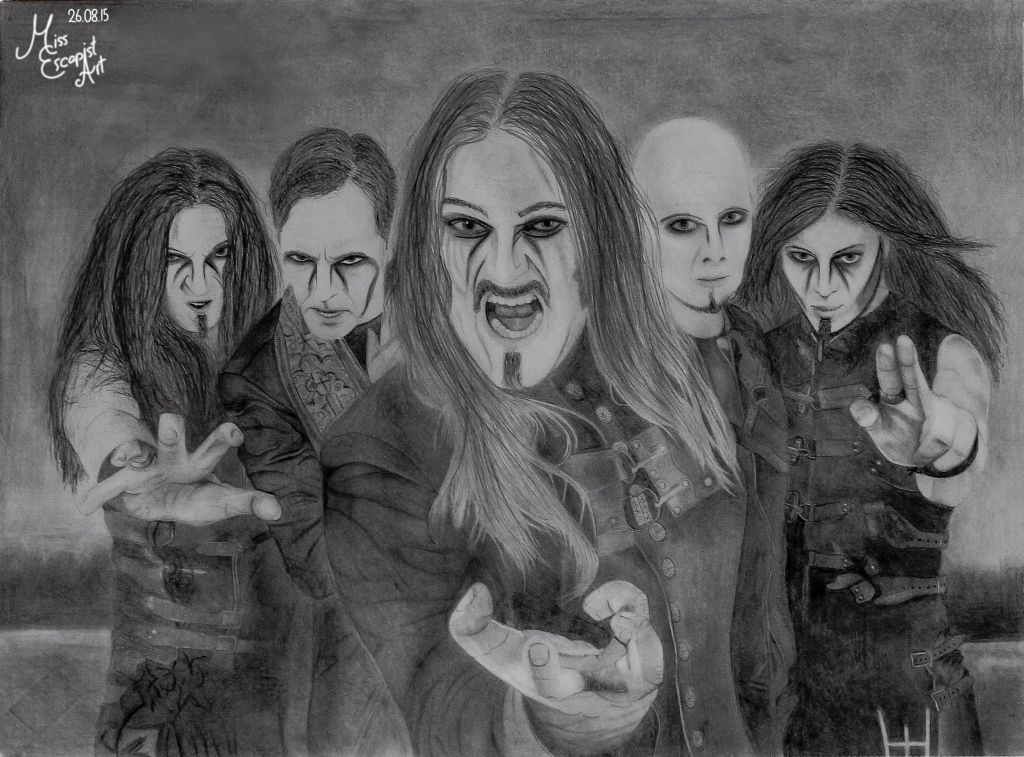 After having bought myself a ticket for my very first Powerwolf show it felt just right to do a drawing dedicated to them. Powerwolf are one of my favourite bands and their music gives me a lot of energy so it was just about time to finally draw them. Until now I have only done “single portraits” – I never drew more than one person in the same picture. But for Powerwolf I really wanted to go with entire band instead of just choosing a single member to depict. As an A4 paper appeared to be too small to get all five of the wolves on it I decided to go with A3 paper instead – another challenge, as I wasn’t used to drawing on anything larger than A4. I started drawing the outlines of the entire band and then went on with shading and detailing form left to right, Falk-Maria being the first to draw and Matthew the last. I worked on the drawing for quite a while and as I drew I literally felt and saw the progress that I made. So, when I had reached the right end of the picture after finishing Matthew, I went back to the left side again to re-draw Falk-Maria and Charles. I went back and forth this way a few times until I was finally satisfied with the result. Which was a few days after the concert. I had intended to finish it before but late is better than never. And it was by far my most ambitious project of 2015, so I guess that’s okay.