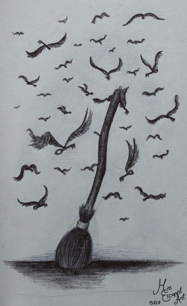 Inktober – what’s that? And why participate? Inktober is a drawing challenge that takes place in – yes, October, you guessed it. The goal is to create 31 ink drawings in 31 days, inspired by an official prompt list (though you can of course choose your own prompts as well). This means that there’s a keyword for each day and you try to come up with a sketch matching that keyword. How you interpret the prompt is up to yourself and you can let your imagination flow. For me, this seemed to be a good opportunity to get out of my comfort zone and try something new. I’m so focussed on drawing (pencil) portraits that I rarely create anything else. Time to change that! I didn’t draw every day, though, as I was quite busy with other things as well. But when I had the time to do so I got out my sketchbook and started creating.