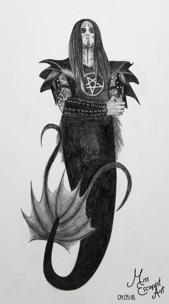 When Powerwolf announced their new album “The Sacrament of Sin” and, additionally to that, released fantastic new photos of the band members, they literally left me without any choice. I just had to draw them again. This time I wanted to approach the “band portrait thing” from another angle, though. Instead of taking a photo of the entire band as a reference and copying it 1:1, I came up with a design that combined the 5 separate portraits in one artwork. I did a rough layout design on my PC first before I transferred that idea to paper. This time I was smart enough to actually start at the left side of the picture and so the first one to draw was Falk Maria, followed by Charles. Atilla, Matthew and Roel followed after that. For this portrait I spent a lot of time with trying to get all the different shades correct, making them look smooth and edgy at the same time. I really wanted to capture the essence of Powerwolf in that drawing, more than I had done in my previous portrait of them. Certainly, one of the artwork’s highlights is the gold paint on their clothes as it really stands out from the pencil drawing. I used two layers of paint to get the right intensity of gold. I made the bottom of the drawing entirely black, apart from the writing, as I hoped for a chance of getting the drawing signed by Powerwolf one day – I imagined them signing with a golden pen on that black area. Yes, I’d definitely like that.